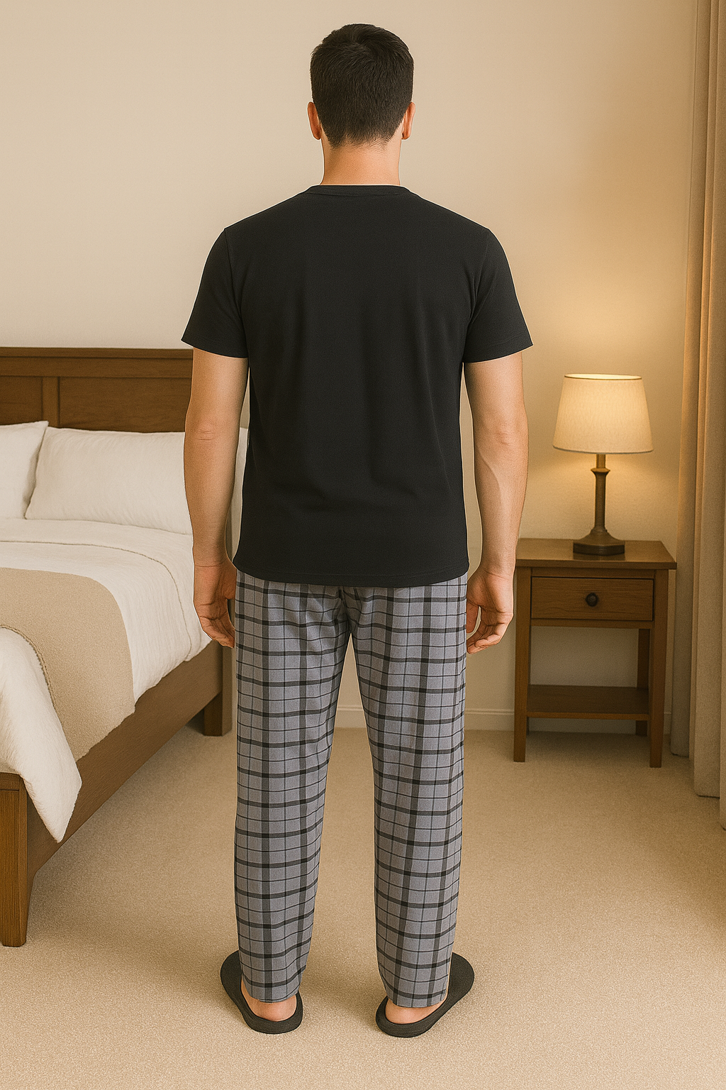 Minimal tonları ve modern kareli deseniyle her tarz ev giyim kombiniyle uyum sağlayabilecek çok yönlü bir parçadır.
